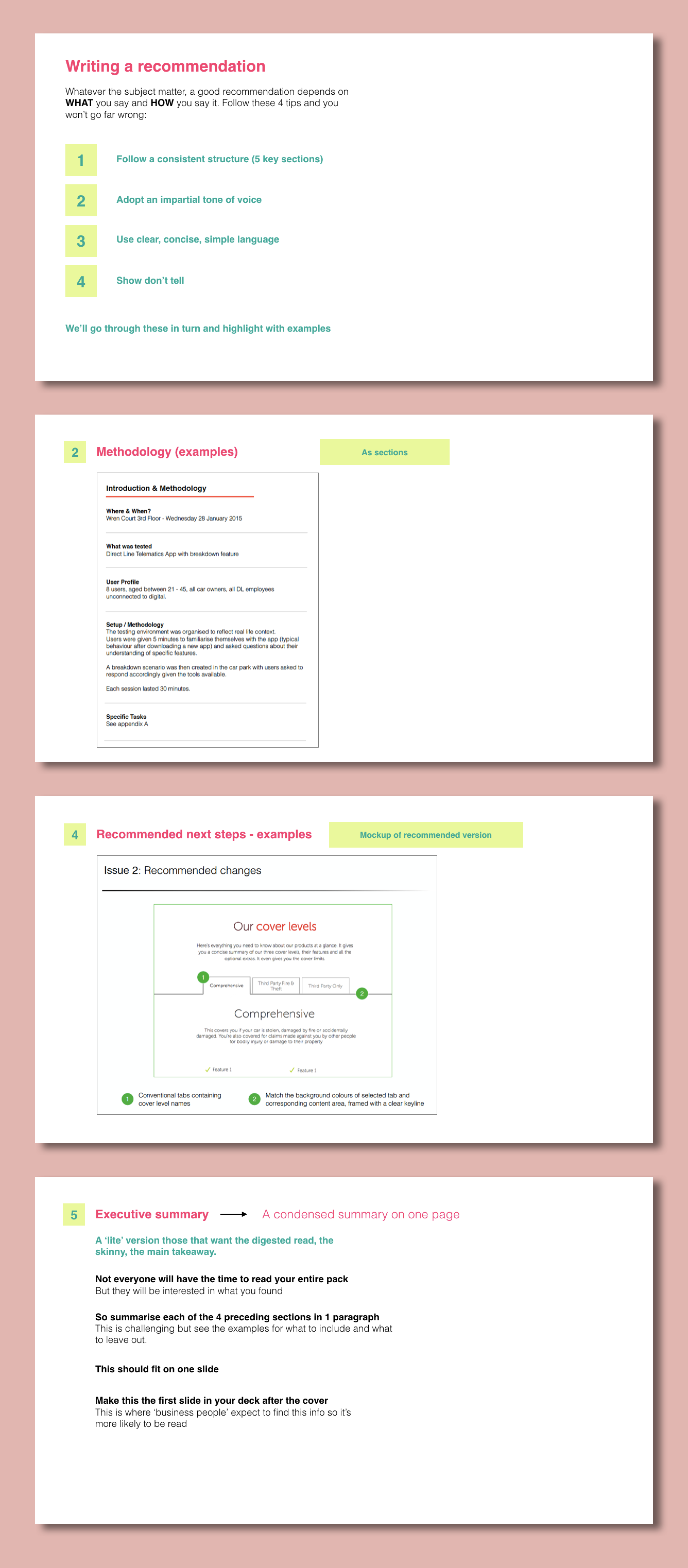 I created this workshop to demystify user experience and make it more accessible to anyone wanting to learn more. It takes participants through the UX design process (or my take on it) step by step and culminates in them creating a prototype and testing it with customers. It’s been pretty popular too. All of Direct Line’s digital team (150 people) have attended a two day session and we’ve since started running workshops with other business areas.