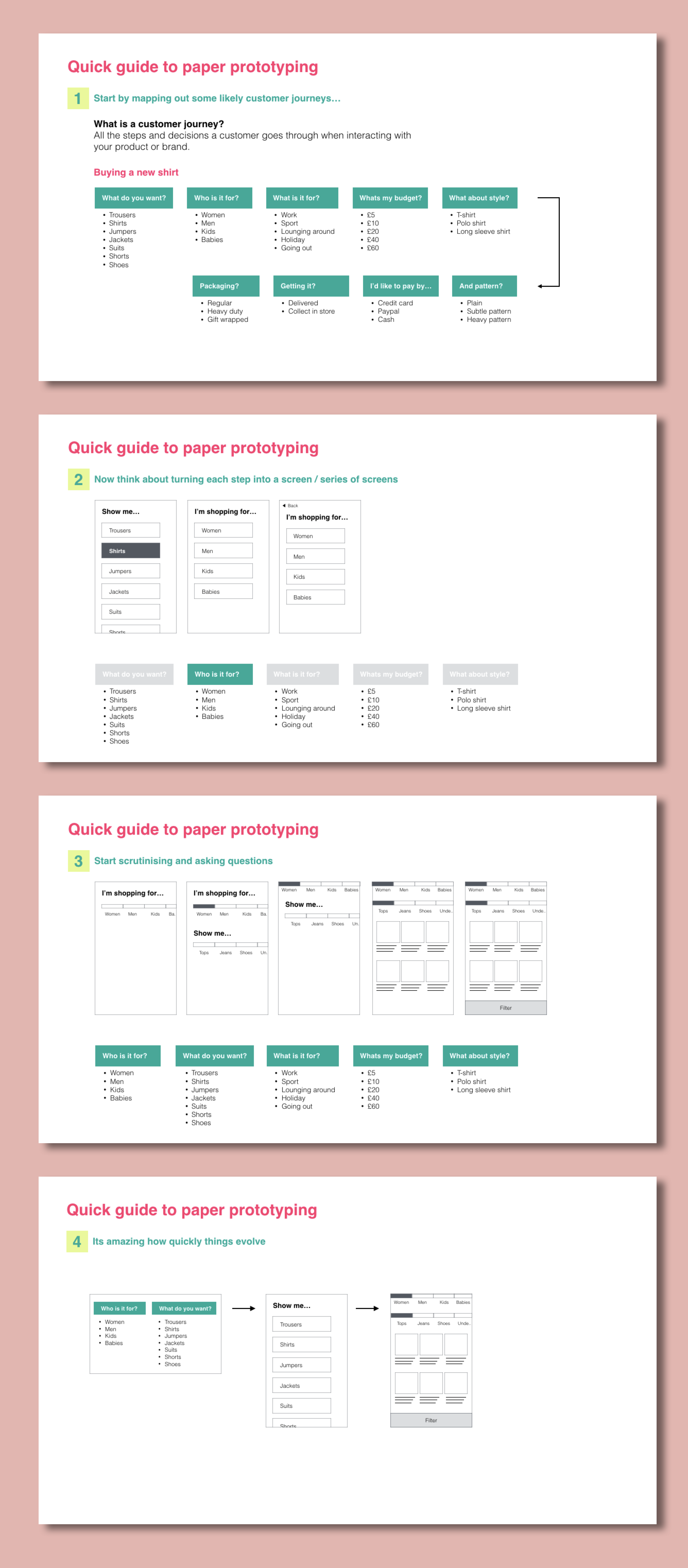 Next comes prototyping. The focus is on creating something rough and ready that can be used with customers. As for effort, less is more.
