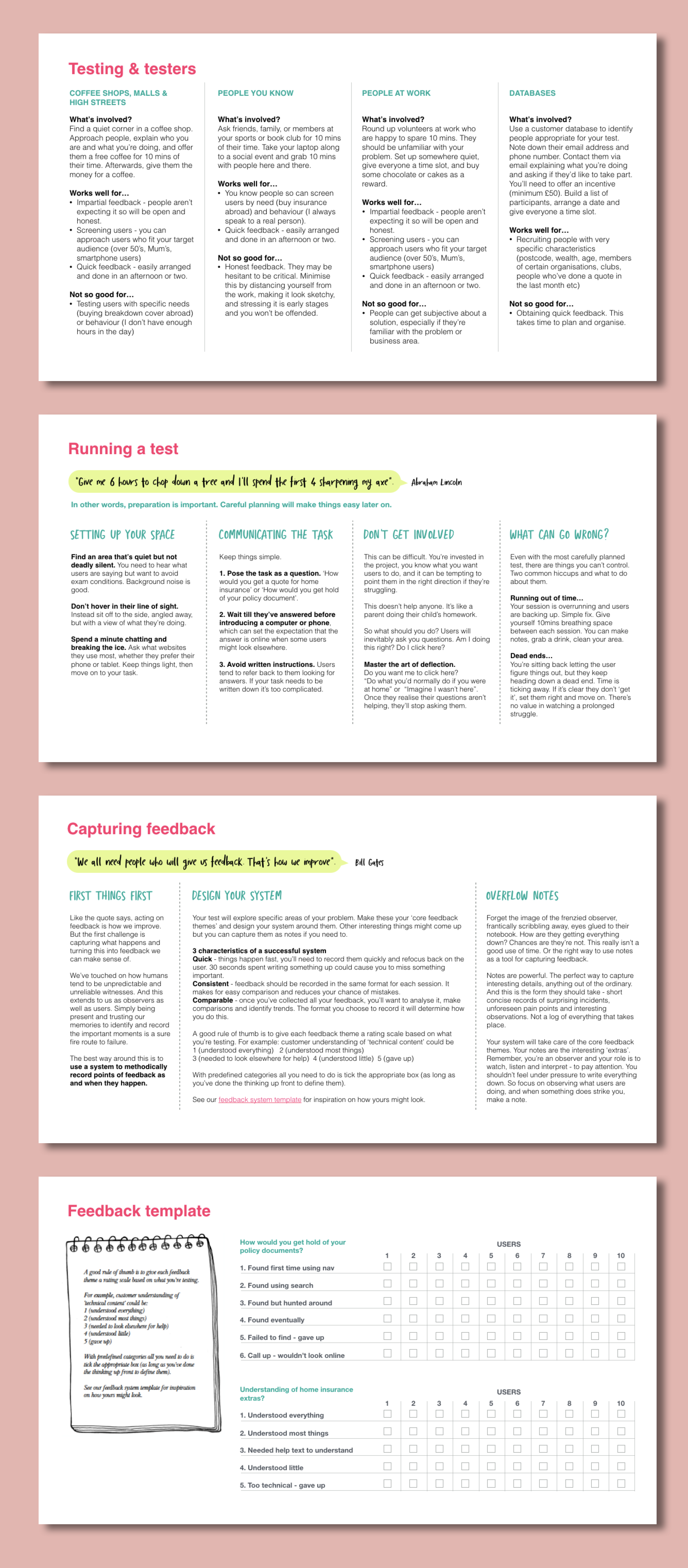 Testing includes tips to help make sure things runs smoothly (and what to do if they don’t), along with a quick and efficient method to capture feedback